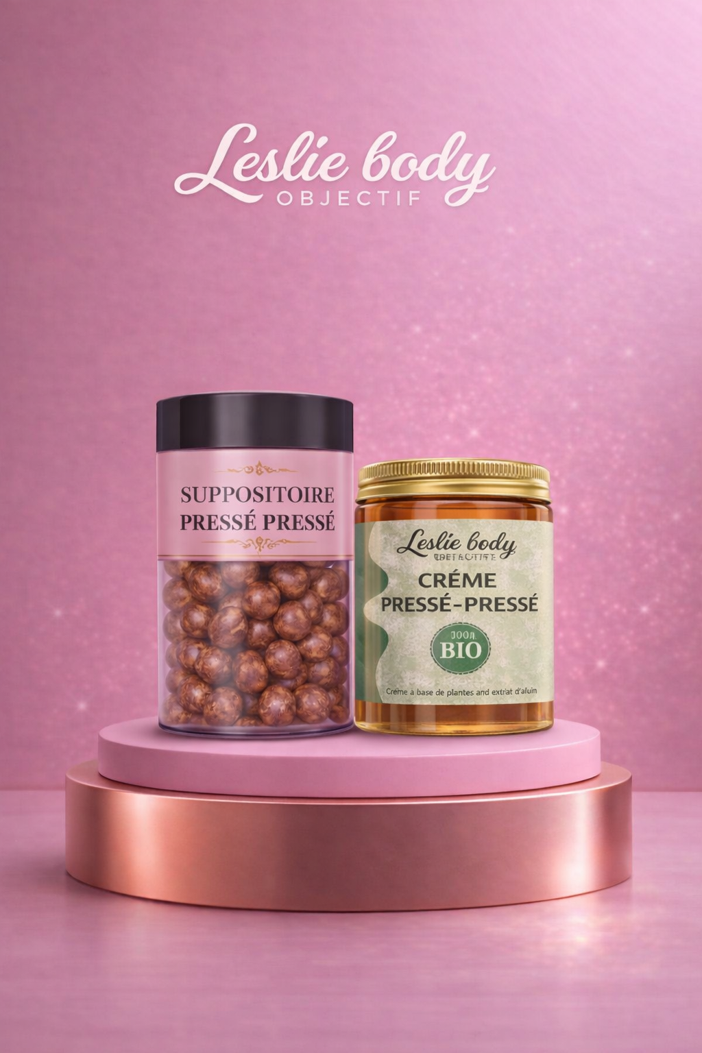 Les suppositoires Pressé-Pressé + la crème PRESSÉ PRESSÉ accompagnent les femmes qui souhaitent prendre soin de leur zone fessière et de leur silhouette de façon ciblée et progressive.